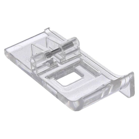 The tape binder is used for finished and covering the raw edges of stretch fabrics. The binder folds the fabric you wish to use as tape around the raw edges as you sew, allowing you to make beautifully finished necks and arm holes and bind any raw edge with ease.