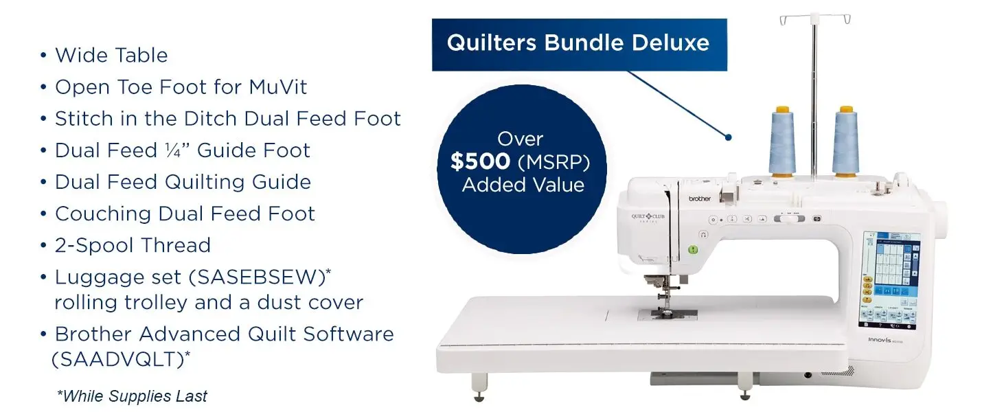 The BQ3100 comes with a wide array of accessories, including multiple presser feet, a wide table for larger projects, and the MuVit Digital Dual Feed system, providing you with the tools needed to tackle diverse sewing and quilting tasks.