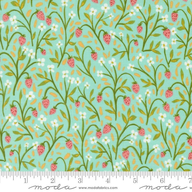 Moda Kindred Aqua fabricโvibrant floral print, perfect for quilting and crafts. High-quality cotton ensures durability and a soft touch for all your creative projects.