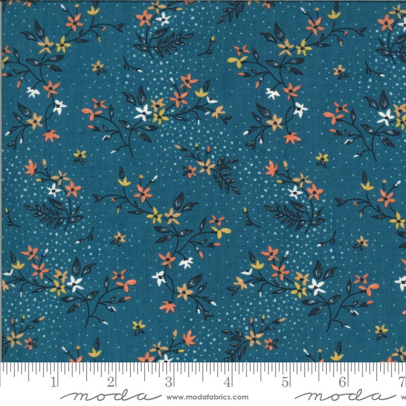 Moda Cider Blueberry Buckle fabricโvibrant floral design on premium cotton. Perfect for quilting or crafting, adding a touch of elegance and color to any project.