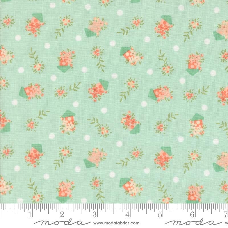 Moda Abloom Robins Egg fabricโ100% cotton, 44-45 wide. Perfect for quilting and crafts, featuring charming aqua floral design. Add a touch of elegance to your projects.