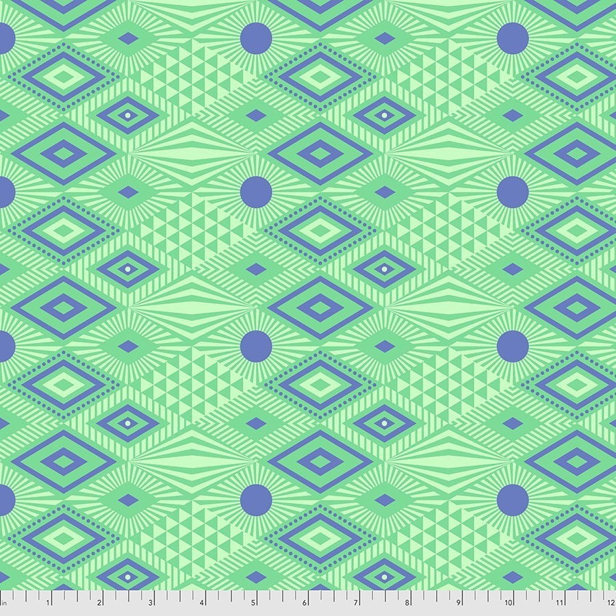 Free Spirit Tula Pink Daydreamer fabric in Lagoon—vibrant, geometric design perfect for quilting and crafts. Add a pop of color to your projects with this high-quality cotton print.