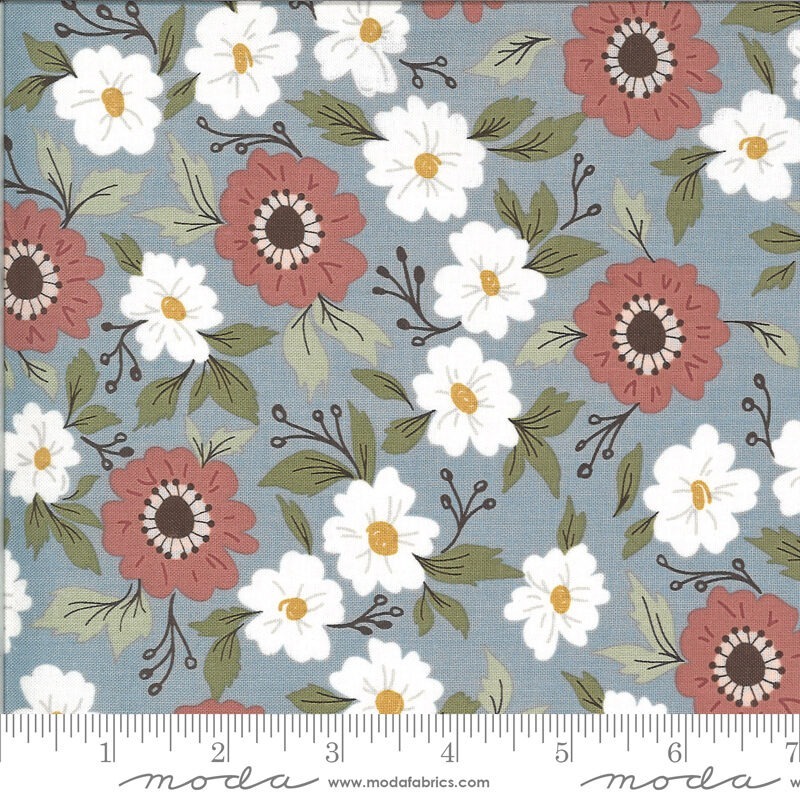 Moda Folktale Forest Path Sky fabricโ100% quilting cotton, 42/44 wide. Perfect for vibrant, nature-inspired quilts and crafts. Elevate your sewing projects with this charming floral design.