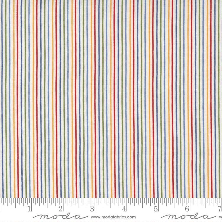 Moda Graze Stripe Vanilla fabricโvibrant, multi-colored stripes on quality cotton. Perfect for quilting, crafts, and home decor. Add a touch of elegance and color to your projects.