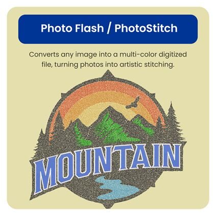 Stand out with specialty effects designed for commercial impact and rapid setup. Use Hand Stitch Effect to introduce organic texture across satin, tatami, running, or backstitch structures. Turn portraits and product images into stitchable art with Reef PhotoStitch for single-color impact, or Photo Flash/PhotoStitch for multicolor outcomes. These tools compress creative experimentation into minutes, not hours, while preserving sewability.