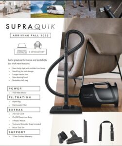 Put cleaning power and convenience in the palm of your hand with SupraQuik. Designed to clean bare floors and rugs, upholstery, stairs and vehicles, this lightweight portable canister includes an array of tools, including three full-size tools, an 8-piece micro-tool set and a storage bag.